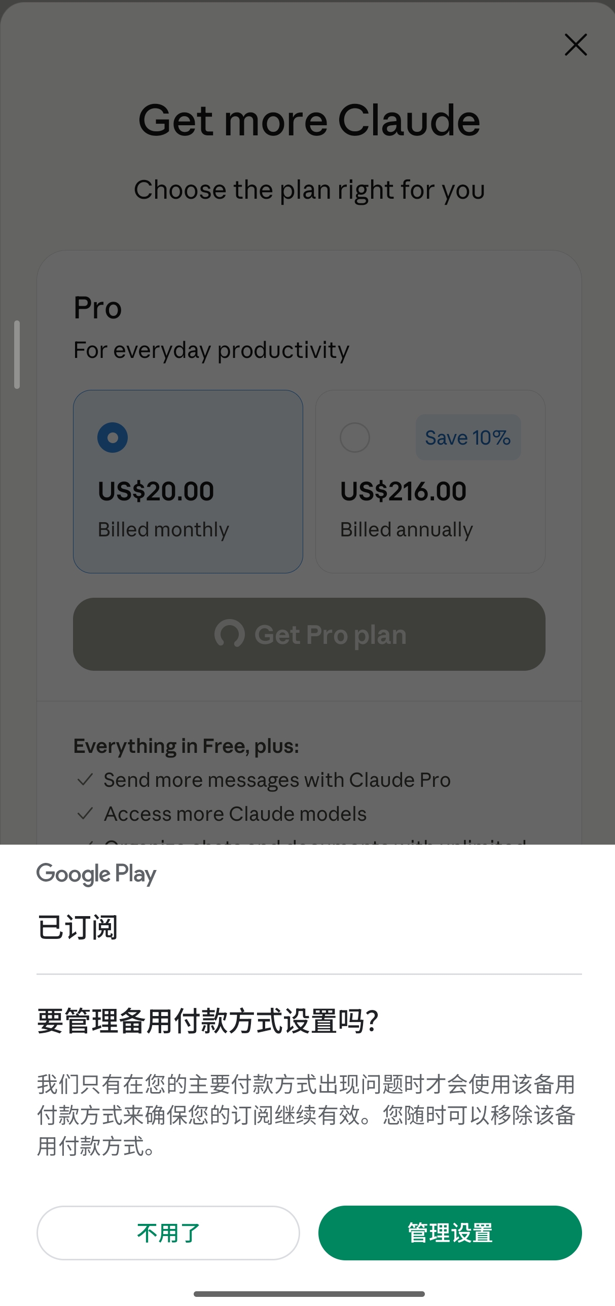 安卓订阅 Claude Pro 完整指南:Google Pay支付步骤详解